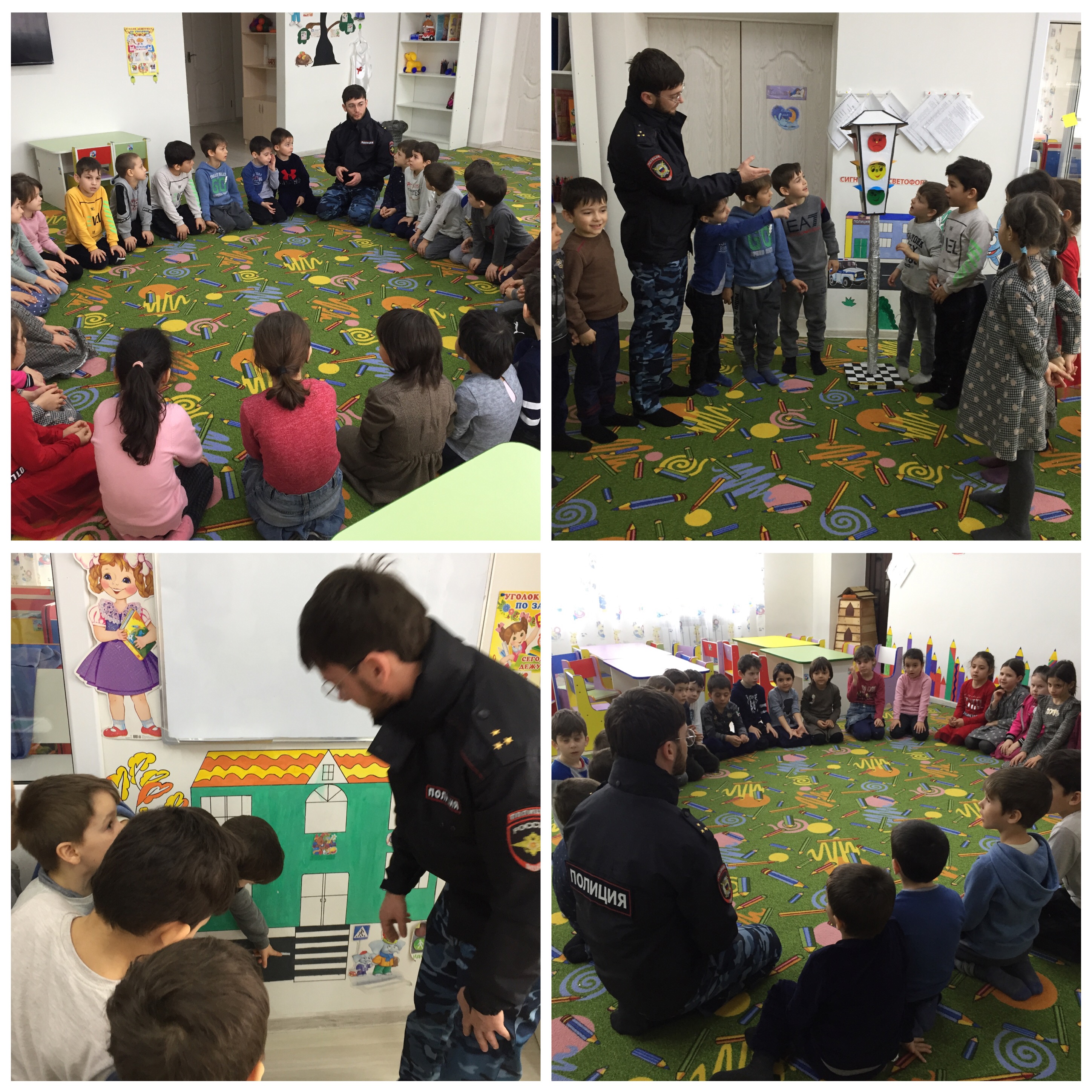 18.03.2021У на в гостях был инспектор ПДН ОУУП и ПДН ОМВД России по Гудермесскому району ЧР старший лейтенант полиции Качалаев Т.А. Он провел беседу с детьми старшей группы "Смешарики" на тему: "Светофор, наш лучший друг!"