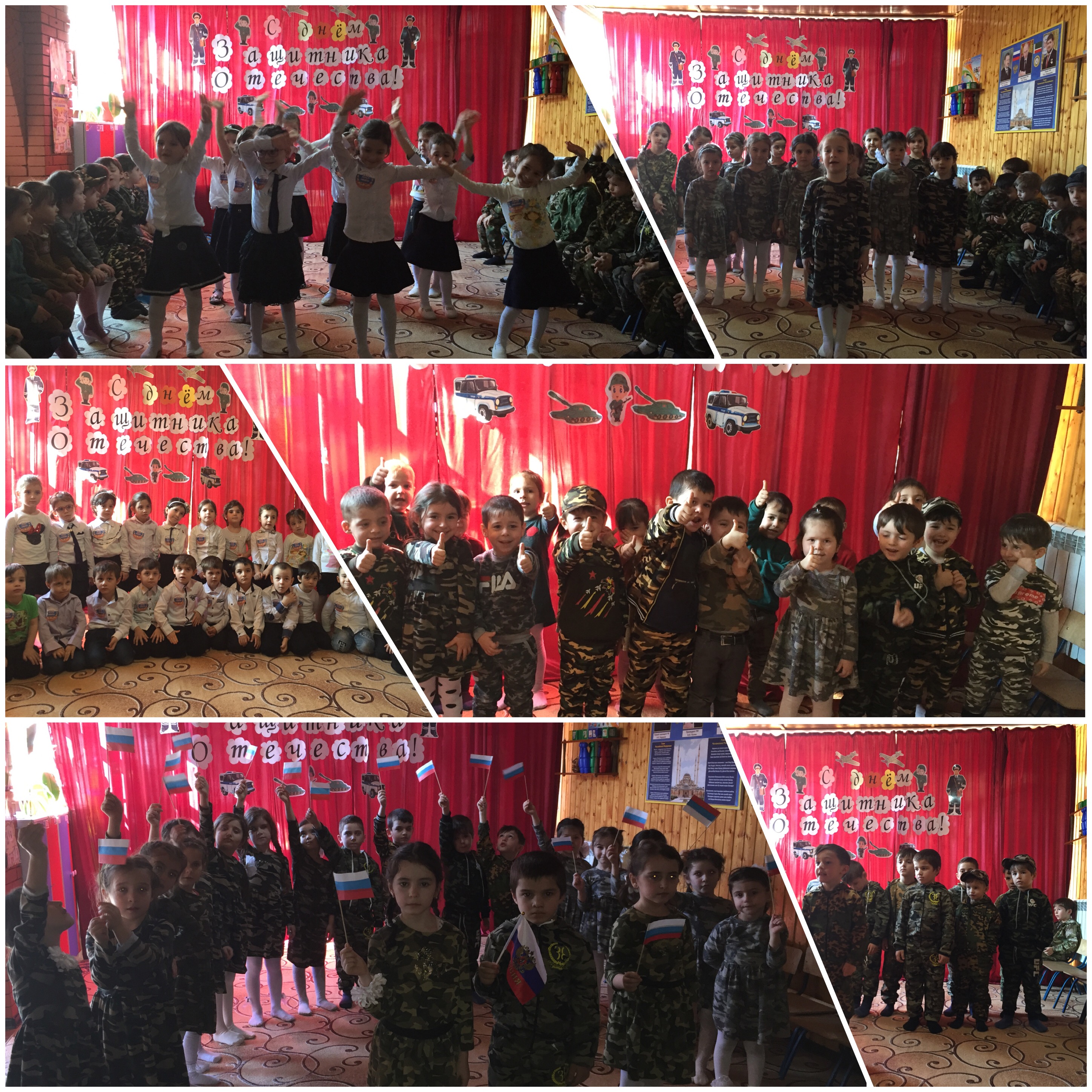 21.02.2019Согласно годовому плану работы ДОУ, в целях повышения знаний воспитанников о защитниках Отечества, о воинах, которые охраняют нашу Родину. В нашем детском саду проведены мероприятия, посвященные Дню защитника Отечества. Воспитанники старшей и средней группы «Ангелочки» и «Белочки» под руководством воспитателей подготовили праздничное мероприятие. Они продемонстрировали свои музыкальные, танцевальные и сценические способности.